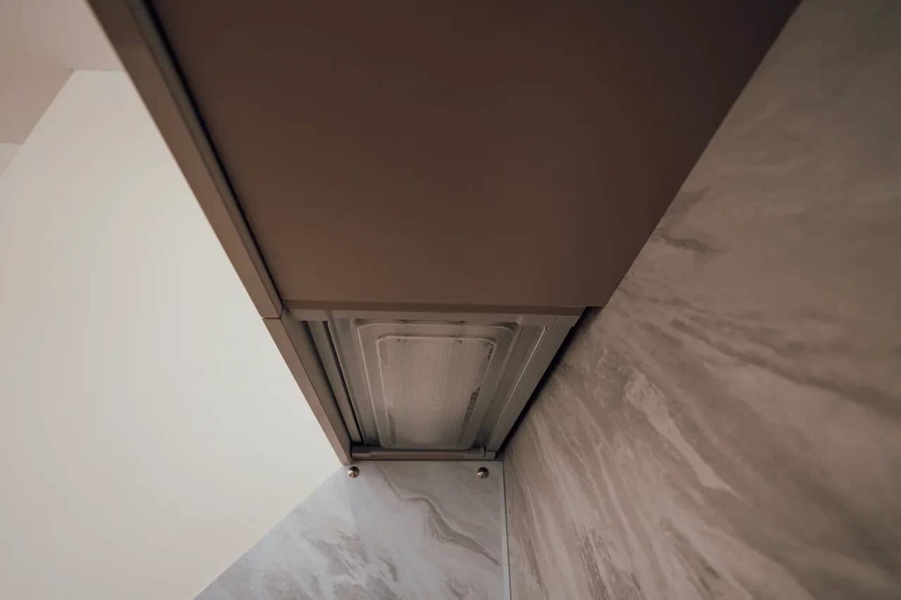 Лучше выбрать встроенную или наклонную вытяжку. Еще вытяжка должна быть мощная, здесь не стоит экономить.